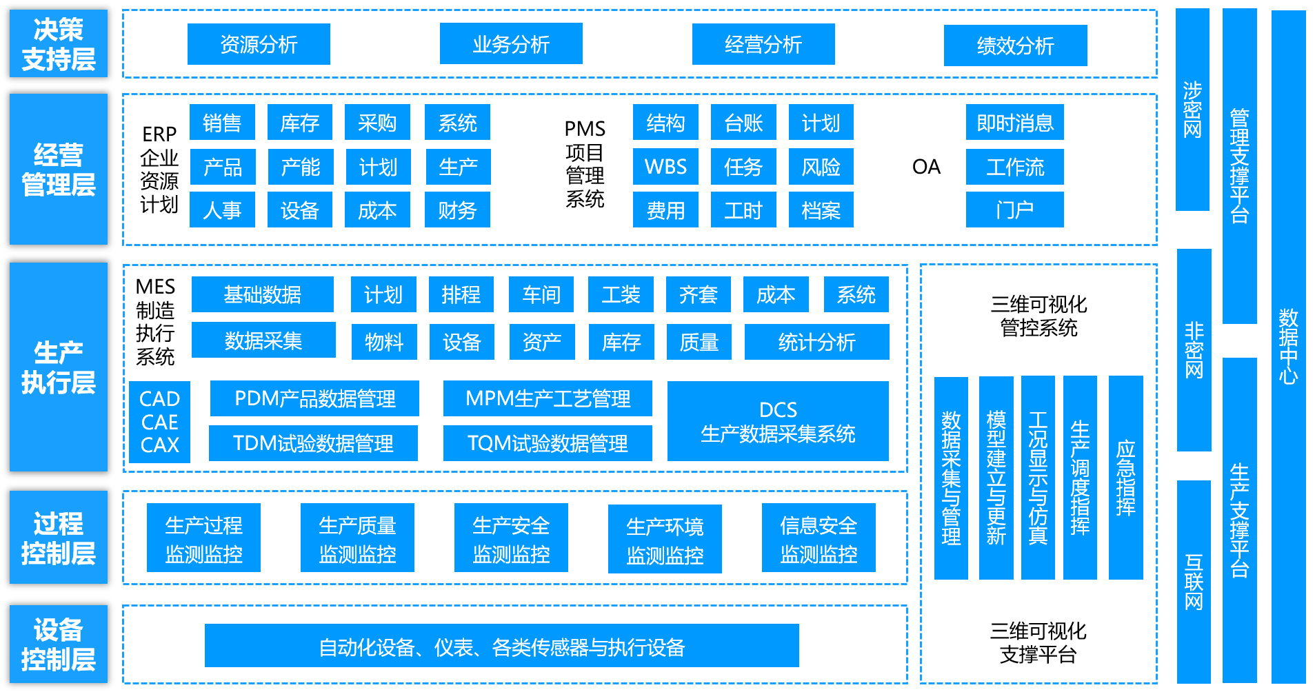 华宏智能工厂解决方案是尊龙时凯公司总结多年来军工信息化咨询、、、、软件研发、、工程服务经验,,以工业4.0与中国制造2025建设要求作为建设目标,,,,基于数字化、、自动化、、、信息化、、、、智能化的高度融合的建设思想,,,围绕产品工艺设计研究、、、生产执行、、、试验测试的产品生命周期全过程管理与管控的一体化解决方案。。。。